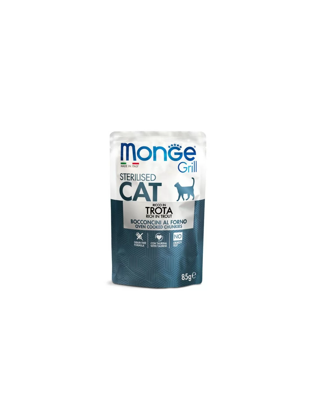 Monge Natural Superpremium Truta Grelhada para Gatos Esterilizados é um alimento completo e sem grãos para gatos adultos esterilizados. Cortes de carne assada para proporcionar ao seu gato uma dieta ideal. A receita contém fontes de proteína animal de alta qualidade, selecionadas por suas propriedades nutricionais.
