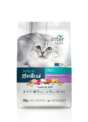 INTERNUTRI TASTY CAT STERILIZED é um alimento seco completo, elaborado tendo em consideração as características e necessidades nutricionais dos gatos esterilizados. Sem corantes nem sabores artificiais, a sua fórmula nutricionalmente equilibrada e segura traz os benefícios do krill do antártico, uma matéria-prima de origem sustentável, mantém pele e pelo saudáveis, reforça o desenvolvimento cerebral e o sistema imunitário.
